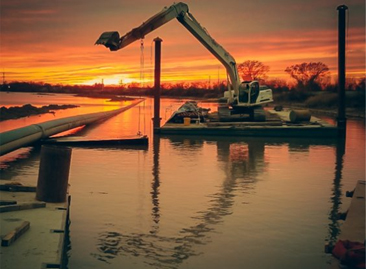 The project featured “unusual complexities,” according to the contractor, including a 3,000-foot section using horizontal directional drilling (HDD) for a river crossing on the Tennessee River and approximately 5,800 feet of subaqueous, or underwater, pipe installation. Negotiations and coordination related to building across roughly three acres of designated wetlands, along with other legal and environmental issues, were required with the Tennessee Valley Authority, the Corps of Engineers, Norfolk Southern, Alabama Department of Transportation and others. The permitting process included nearly a dozen agencies and took almost three years to complete.