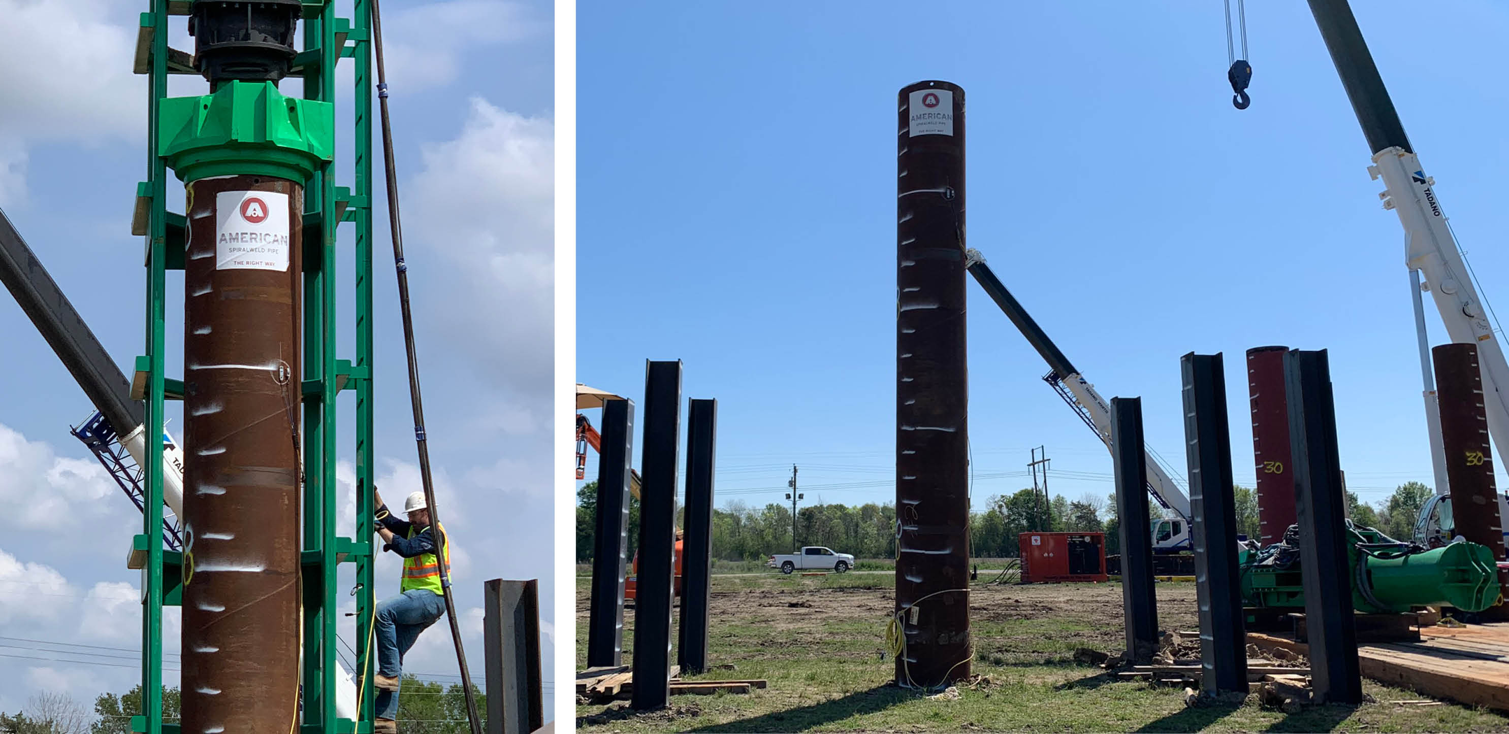 AMERICAN pipe was used when teaching operators and engineers the proper use of impact and vibratory equipment. ASWP also donated pipe to assist in two major geotechnical engineering studies. The first study compared the driveability of spiral-welded steel pipe versus other pipe materials through dynamic testing. The second study measured the characteristics of spiral-welded steel pipe for open ended pipe plugging and then assessed with restrikes at the three- and seven-day marks. Studies like these are only possible when geotechnical engineers, equipment manufacturers and piling suppliers, like ASWP, work together.