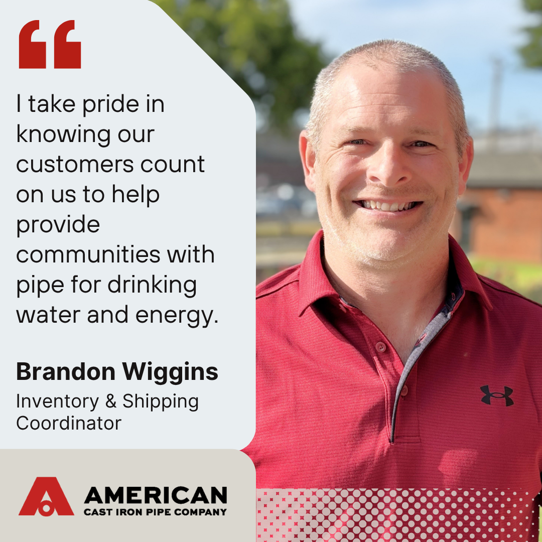 What Brandon enjoys most about his job is helping to deliver products to customers in a timely manner while continuing to earn their respect and business. “I’ve found a sense of pride in knowing our customers count on us to help provide communities with pipe for clean drinking water and energy.”