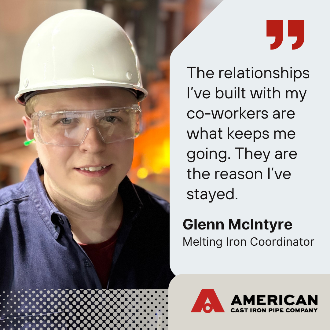 Before learning about ACIPCO from a family friend in 2019, Glenn McIntyre had dreams of being a firefighter. Now, he’s found success by monitoring the chemistry and temperature of 2,700-degree iron for making pipe.