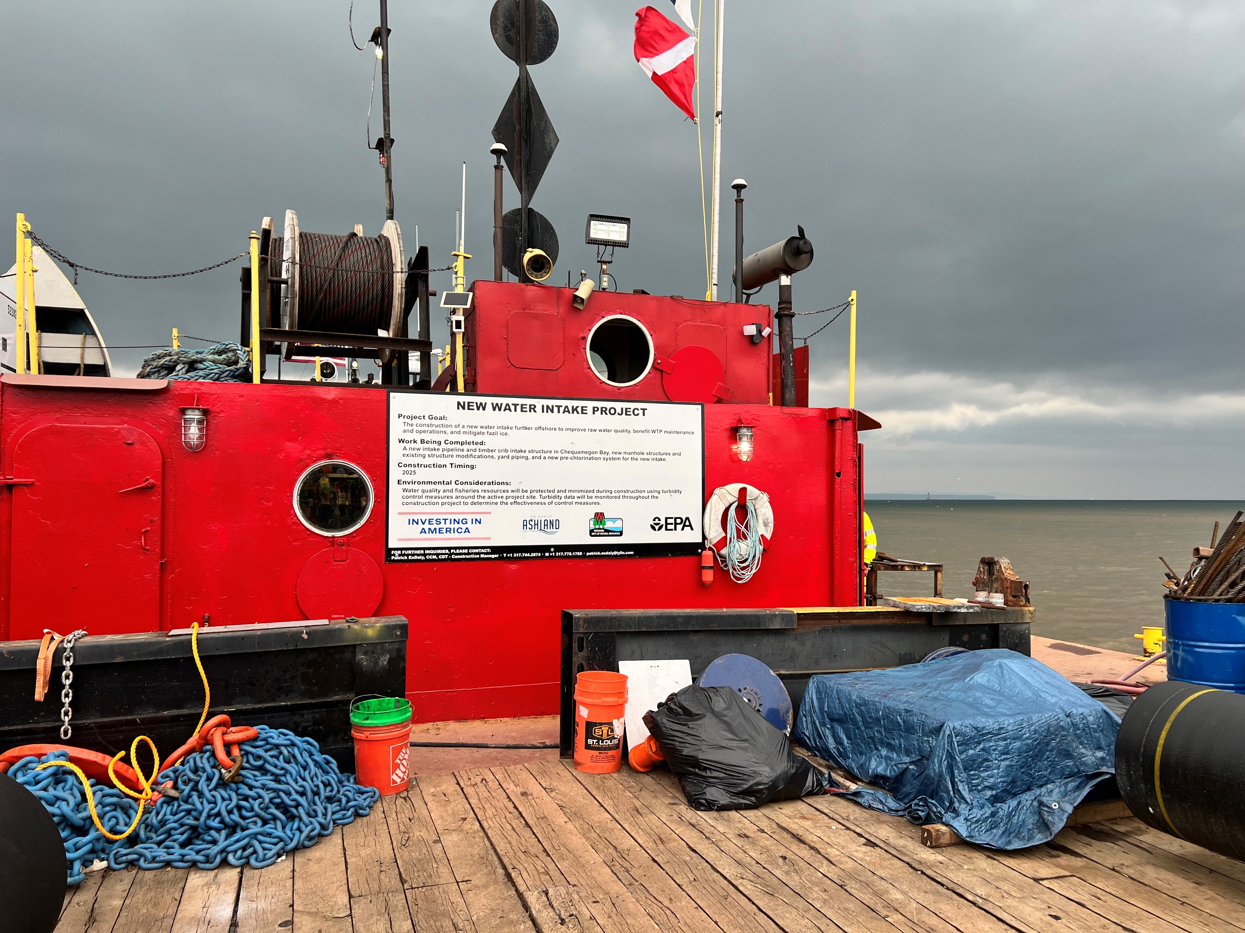 Ashland’s existing water intake was built in 1891 and originally drew water 4,000 feet offshore. In 1922, the intake was accidentally cut 1,950 feet offshore by a ship anchoring in the bay during a storm. Now that the new line is complete, the existing intake will serve as a secondary or backup line.