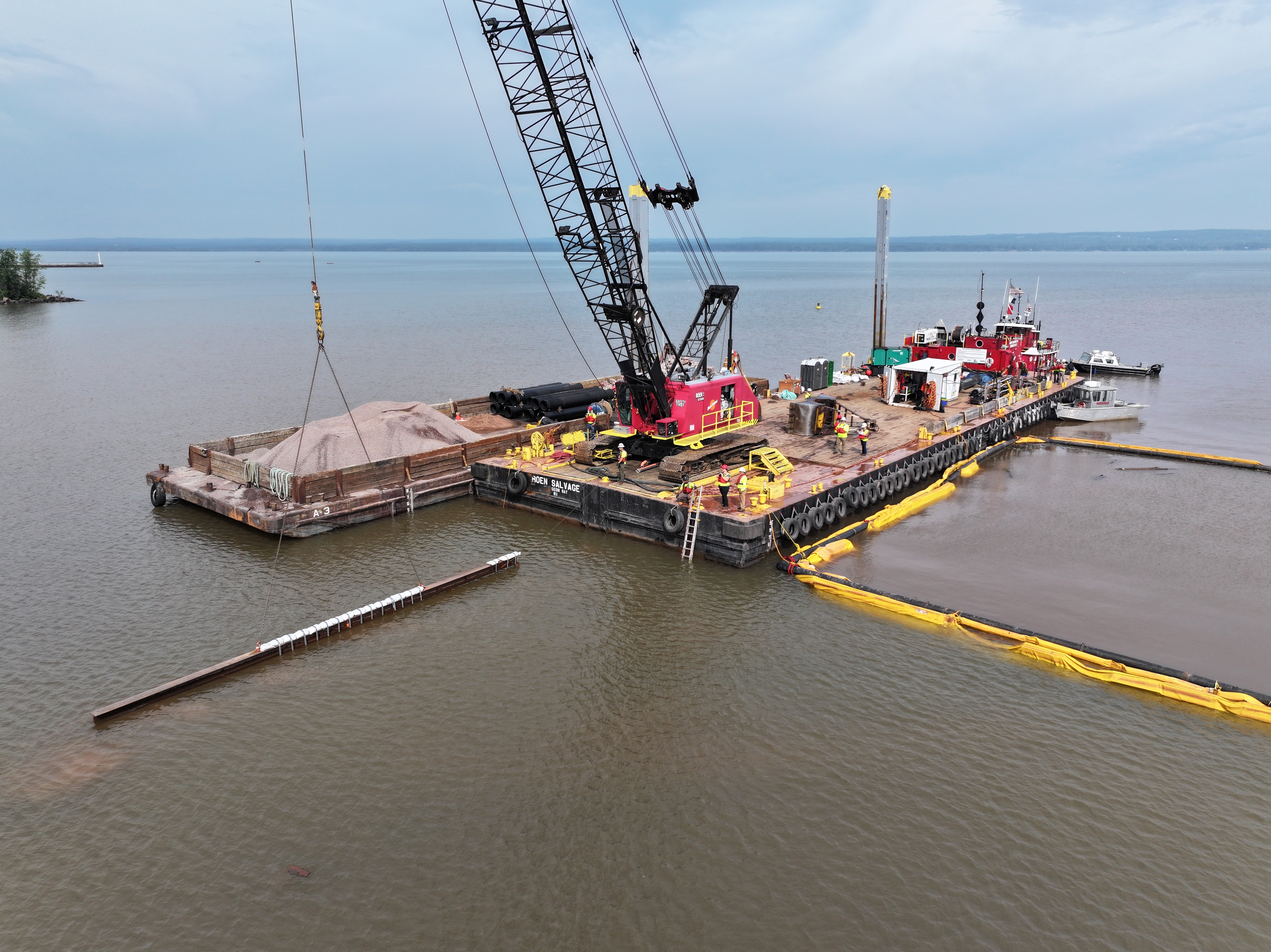 “It’s amazing to be part of a project in the community you grew up in and to know the city will have a much better water supply,” said First Waterworks Regional Manager Chris Mirwald. “It’s a unique project; we don’t do this kind of work every day. Being on a barge and installing pipe in Lake Superior where I swam as a kid, it’s interesting.”